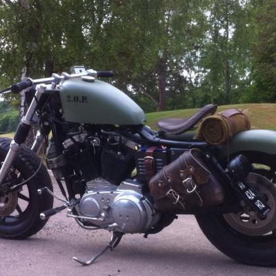 L'ex Bécane de Julie, bobber 883 dans cadre softail